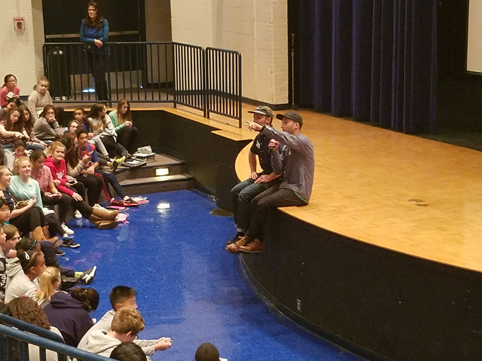 Seventh graders had an opportunity to enjoy a presentation by Protect Our Winters, a "passionate crew of diehards,professional athletes and industry brands mobilizing the outdoor sports community to lead the charge towards positive climate action." Ms. Alam, a seventh grade science teacher, invited Brody Levin and his team to field students' questions about global warming and help students brainstorm ways they can protect our environment. Seventh graders enjoyed the presentation. Neha J, Sean C, and Michael R were prompted to take energy saving measures like installing "low-flow showerheads" and "energy-saving lightbulbs" at home and around the community. Anthony M-J and Lorenzo are making extra efforts to turn off the lights at home, too.